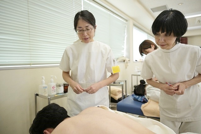 まずは徹底的にツボの位置確認です。田坂里織先生がツボの位置(「取穴(しゅけつ)」といいます)を確認中。