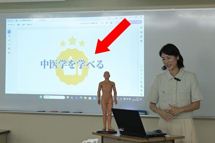 そして、なんと体験入学にも顏を出して下さり、明世先生からの無茶ぶりに応えて(笑)、ちょっとした中医学レクチャーの時間となりました