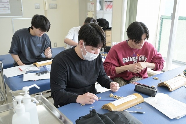 写真:リョウペイとテッペイのペイペイコンビ。「小縒り」作成中。