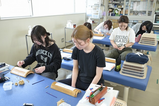 そうそう、伝統的に、透熱灸の練習は「竹」の上でおこないますが、東京衛生学園では竹の上の専用シートが乗ります。