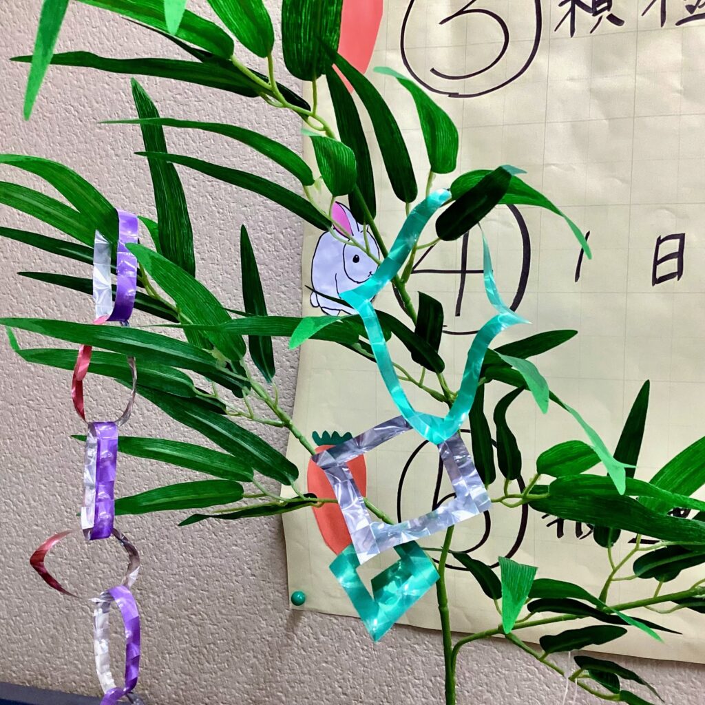 毎年、教室に七夕かざりをしています。