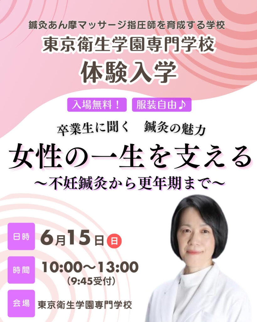 【体験入学 6/15(日)開催】女性のライフステージと鍼灸の可能性を学ぶ!卒業生の声で知る、鍼灸の魅力✨