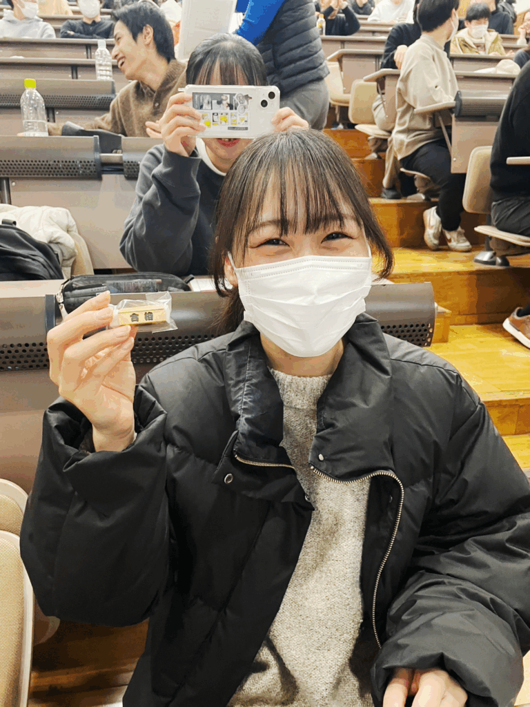 「理事長のメッセージ入りキットカット」と「合格消しゴム」の最強合格グッズが配られ、