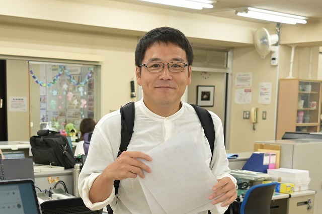 写真:授業後に教務室に顏を出した高橋洋輔先生