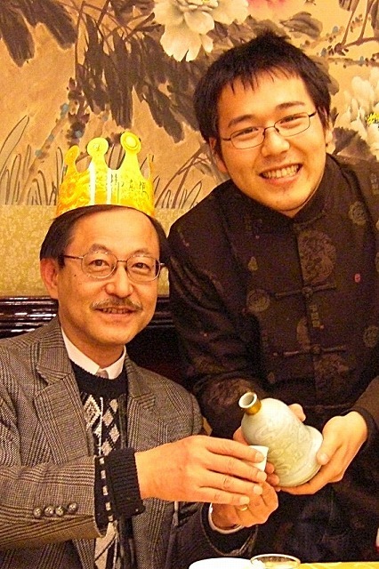 兵頭明先生と洋輔先生。ちなみに、これは中国で兵頭先生の誕生日のお祝いをしたときのもの。