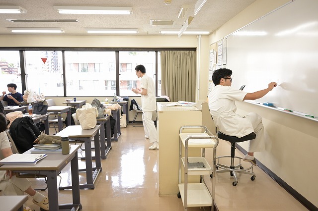 東京衛生学園専門学校の校舎は7階立です。はり師・きゅう師・あん摩マッサージ指圧師の国家資格を目的とする東洋医療総合学科の教室は現在は7階です。7階には4つの教室がありますが、そのうち3つが東洋医療総合学科の教室。それぞれ、1年生から3年生まで。1部(昼)と2部(夜)は兼用となってます。