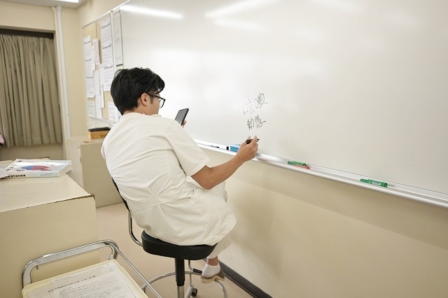 ホリイさんとモエピーも何かの練習していたようです。二人もOSCEの練習かな。