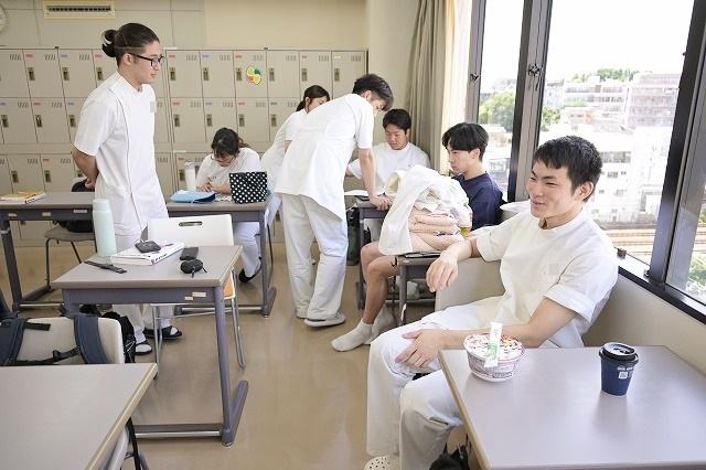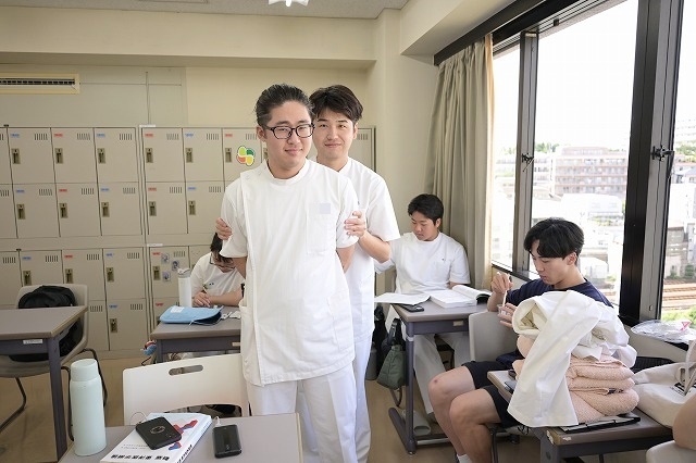 そんな4階実技室では月末のOSCE((Objective Structured Clinical Examination:客観的臨床能力試験)に向けてツボの勉強そしていたフミヤとサッちゃん。3年生に油断なし。