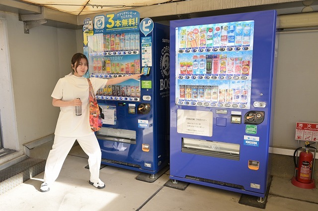 新しい自販機はキャッシュレス採用となってます。モエピーが「ピっ」のポーズをとってくれました(笑)