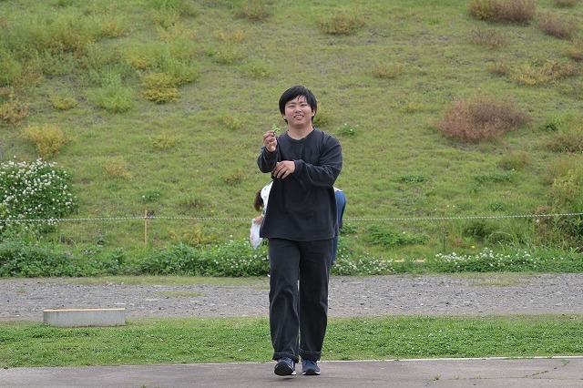 ゲンキが手に雑草持って、「先生これヨモギですか」って質問しにきたところ(笑)