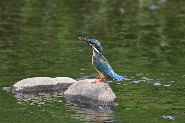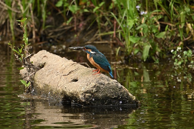 写真:くちばしの下が赤いのはメスのカワセミです。