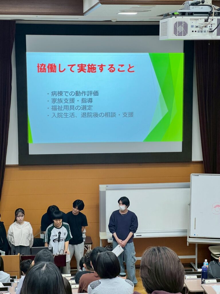 最後にはグループごとの発表を行い、職種の垣根を越えたチーム医療の第一歩を体験しました。