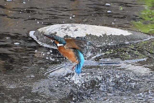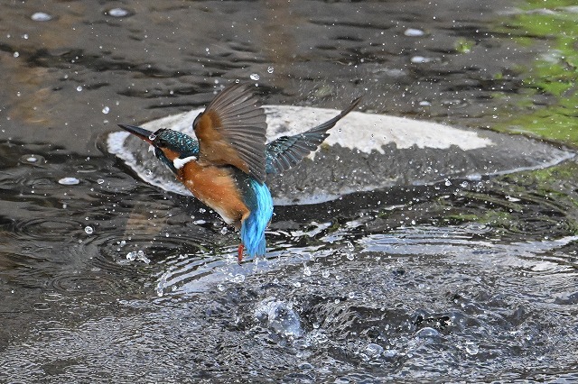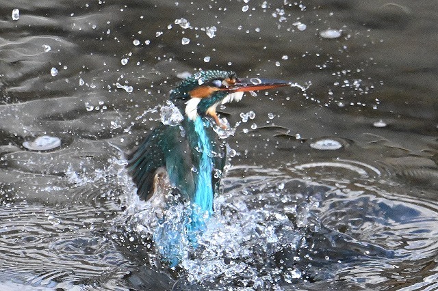 水面から飛び出したところ…って見ると普通に思うかもしれないけど、飛び込んだ瞬間あるいは出てくる瞬間を待って、ファインダー(液晶)に収めて、ピント合わせてって、何気に難しいのです。昨年から本格的にやりだしてようやくコツを掴んできました。ミラーレス一眼カメラとレンズの設定など大変ですが、すべてが嚙み合うと嬉しーってなります。