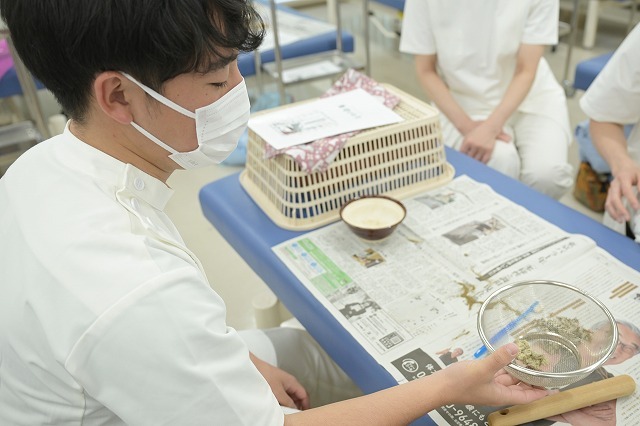 蓬(ヨモギ)の葉を乾燥させて作られるお灸の素ですが、1年生は春に玉川の土手まで行って蓬を採ってきてました。