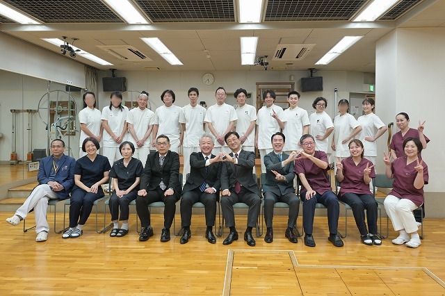 えー、と、とくにコメントすることもないのですが、見てのとおり東京衛生学園専門学校は、学生さんと先生の距離がとても近くて、そして楽しい鍼灸マッサージ学校です(笑)。最前列、中央で両手を広げているのが中村芳明理事長、その左が学校長の新井恒紀、右が学科長の菅原之人。他は省略(笑)。
