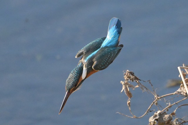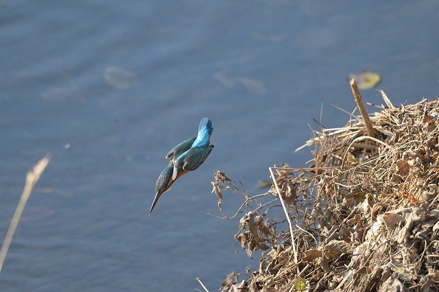 これは上の写真のトリミング前。右上の枝からダイブしました。