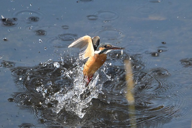 写真:これはダイブして小魚捕まえて水面から出てきたところです。