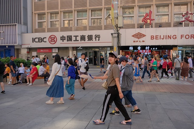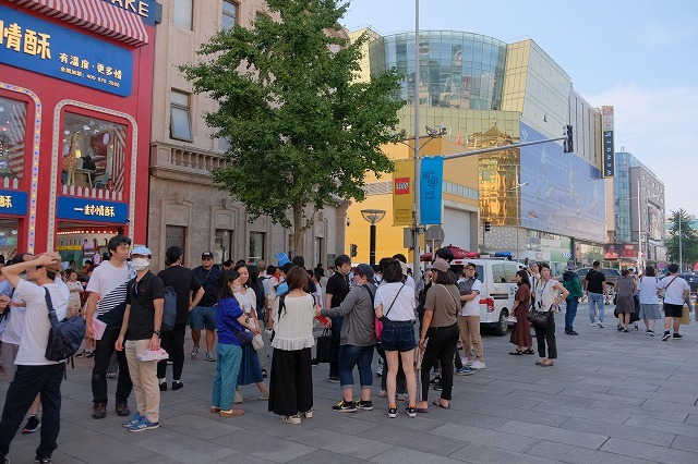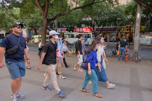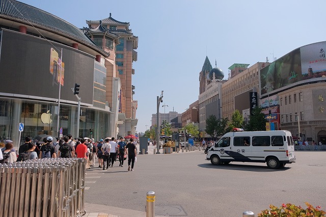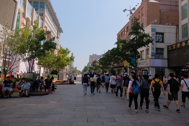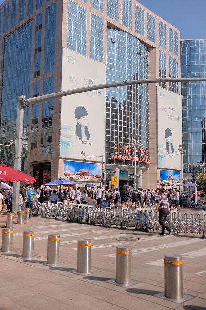 さて、中国初日はいきなりの観光です。北京の有名な歩行者天国?の王府井(ワンフーチン)に。バスが近くに停められないので、離れたところで降りて歩きます。以前は無理やり停まっていたのだが(笑)