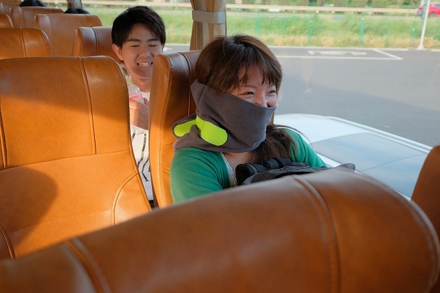 ユリカちゃん、ネックピロー持ってきてたのね。旅慣れてますねー。
