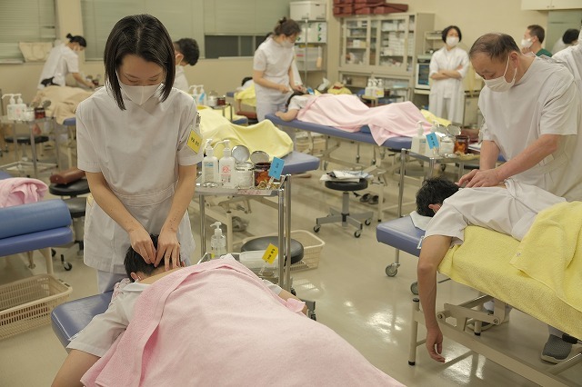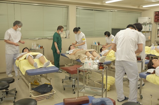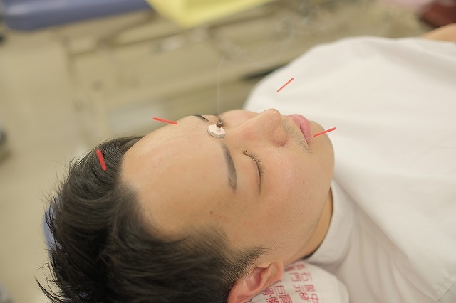 この日の授業は「鼻閉・鼻汁」の鍼灸治療でした。うつ伏せと仰向けの治療を行っていきます。