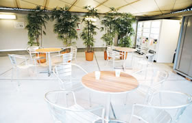 天気のいい日はここでのんびり。友だちとおしゃべりしたり、一人物思いにふけったり…。自販機でドリンクを安く買えるのもGood。夜間部の学生には食べ物の販売機が人気です。