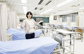 授業時間以外も実習室を利用できます。東洋医療総合学科学生は鍼灸の練習、リハビリテーション学科は卒業研究の実験、看護学科は実習前の予行演習など、最大限に活用しています。