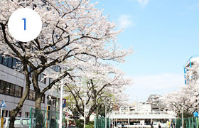 東京衛生学園専門学校前の広場では、毎年春に満開の桜を楽しむことができます。入学の日に桜が満開だったらラッキーですね!