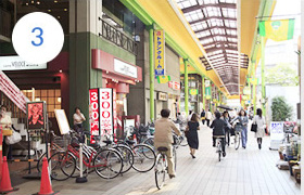 学校と大森駅の中間にある、アーケード商店街。昭和の香りが漂う個人商店もありますが、放課後の自習に使えるコーヒーショップやファミレスも充実しています。