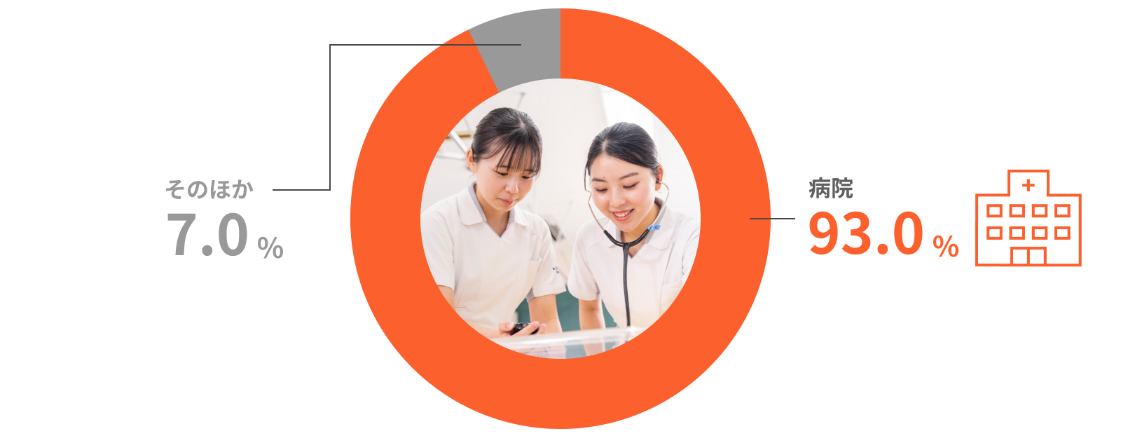 長年にわたって蓄積された卒業生とのネットワーク、病院・施設との信頼関係によって、質・量ともに豊富な求人が集まります。本校に寄せられた求人情報は学内掲示のほか、web検索システムで自宅からもチェックできます。