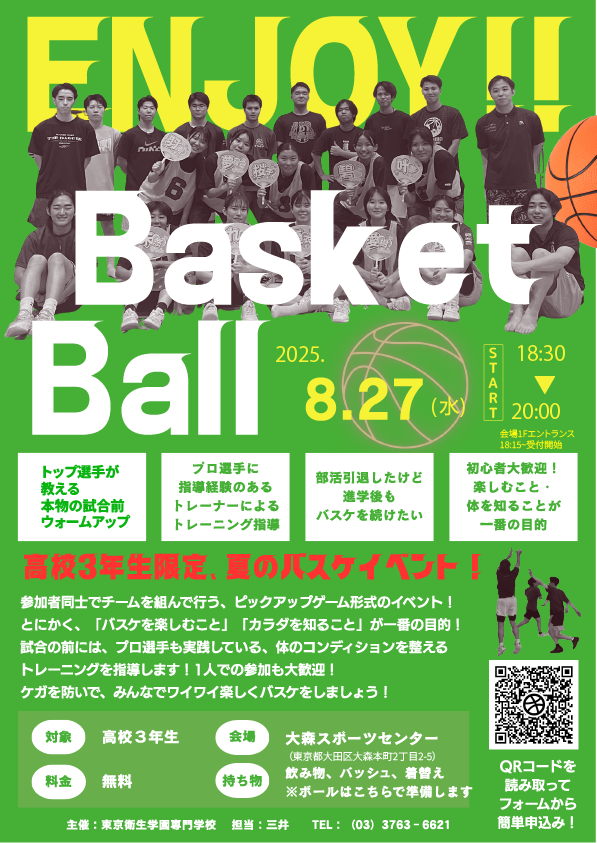 8月27日(水)、高校三年生向けの夏のバスケイベントを開催します!