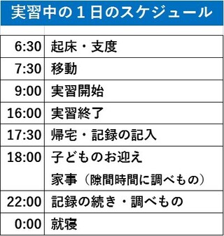 実習中は朝が早かったので、子どもを保育園へ送るのは家族に協力してもらいました。