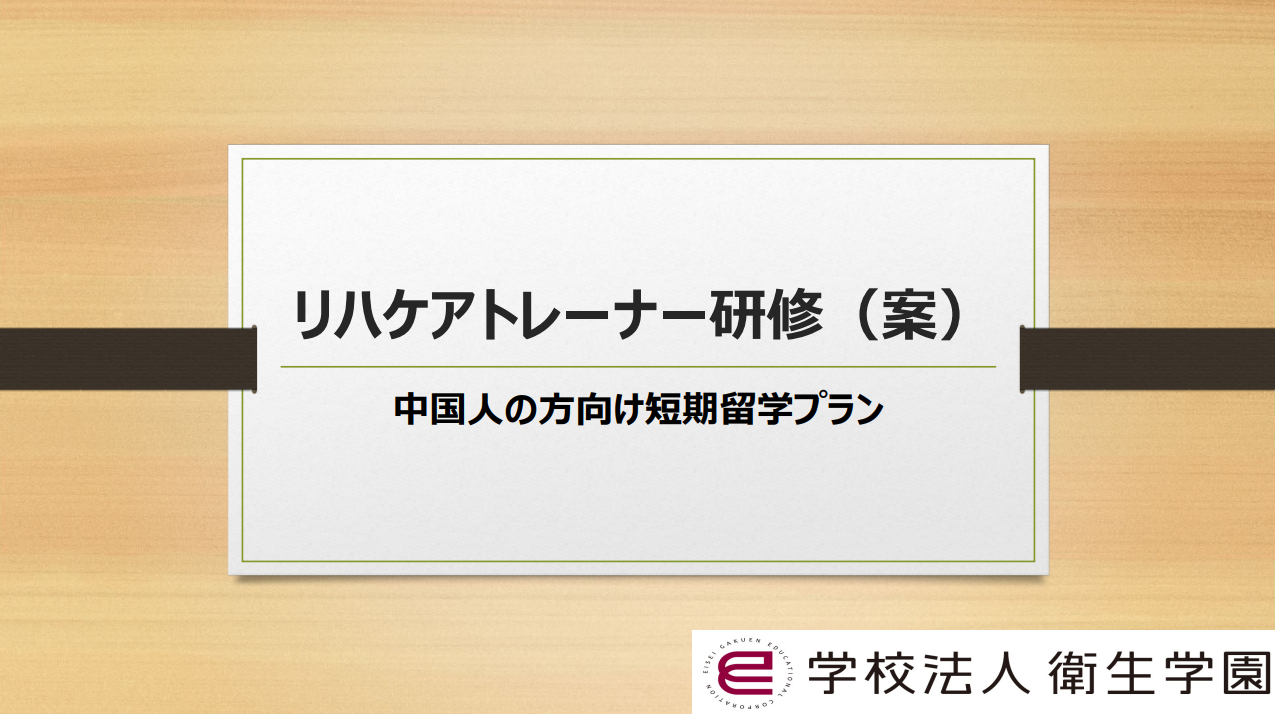 学校法人衛生学園では中国の方向けのリハケアトレーナー研修を企画しています。
