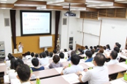 小池先生は、東洋医療総合学科を卒業後、本校の臨床教育専攻科へ進学。臨床実習や往診で、臨床力を磨き、専攻科を卒業後に、本校の提携校である天津中医薬大学へ入学しました。中国では、病院実習でさまざまな患者さんの鍼灸治療を行い、帰国後は、往診や鍼灸学校での非常勤講師、大学病院への勤務などを経て、6年前に東明堂 小池鍼灸院を開業しました。講演では、さまざまな経験通して感じた「患者さんに関わる上で大切にしていること」や「鍼灸マッサージ師に必要なこと」をお話しいただきました。また、患者さんの症例と鍼灸の効果についての話しでは、手術でなければ治らないと言われた患者さんの症状が鍼灸治療でみるみる回復していく様子を、治療エピソードと共に写真で紹介。鍼灸の効果を改めて実感できるお話でした。
