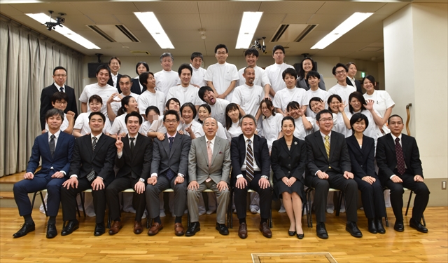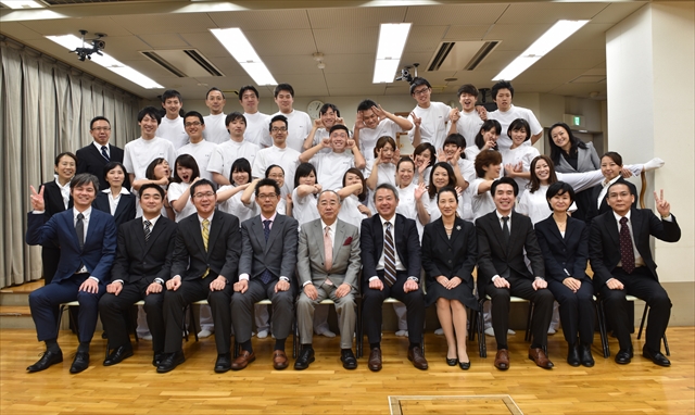 写真:昼の3年生(東洋医療総合学科1部23期生)。理事長、ちょっと顔がかたいっす(-_-;)