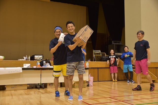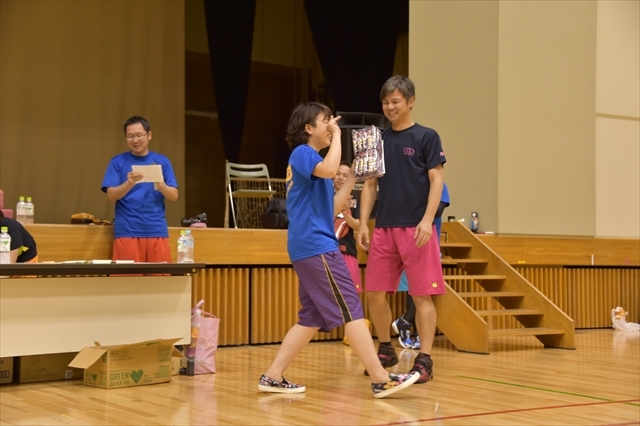 ってなわけで表彰式です。準備中。雅明先生とハヤティーこと小林先生。小林先生は昼3クラスパンツを購入したにも関わらず、学校に忘れてくるという失態を(-_-;)。だから赤いプーマ。