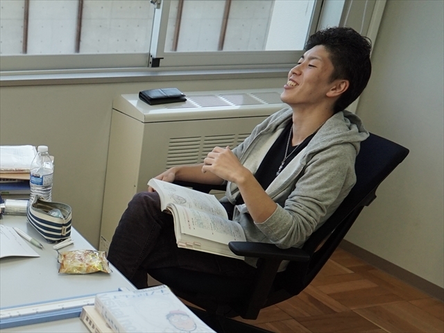 こっちの教室も勉強で残っていた。1人だけ前でカッコつけて本読んでる風のスズキ君。