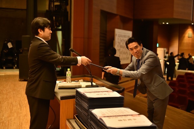 ってことで、職員らは10時15分に集合。長い一日が始まります。受付の準備中。うしろ向きは川井先生。