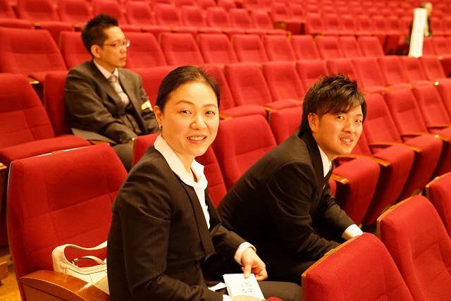 お昼を食べて会場に言ったらこちらの方々はまだリハーサル中でした。ウサミさんの送辞とタカギ君の答辞。