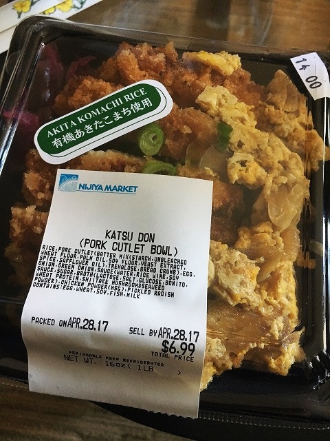 ジャパンタウンなので、近くのお店に売っているものも日本のものばかり。当然お弁当もこんな感じ。アメリカを感じることもできず、そして前日カツカレーを食べたのを忘れてこれ。