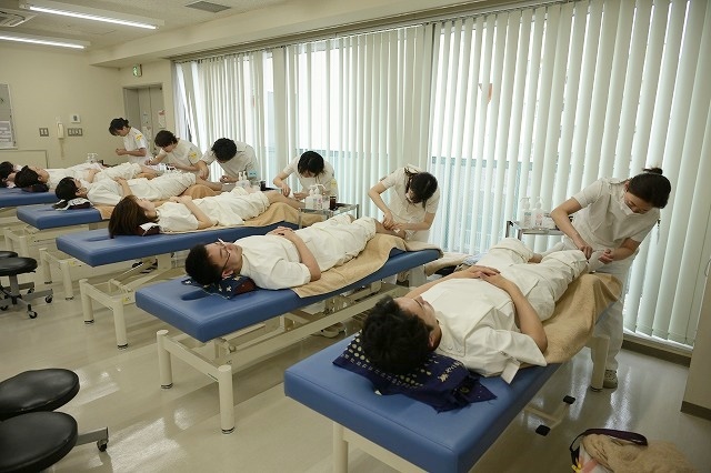 お灸の数だと、軽くみても3年生までに20000壮已上はお灸をしています。そんだけ練習することで、形、大きさ、硬さ、そして手際の良さが身に付きます。しかし、ここまででは直接お互いの体(皮膚)にはまだできません。患者さんが熱がる可能性があります。そこで、灸熱を緩和する為の「技」を3年生でようやく学んで練習していきます。
