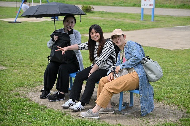 随分と遠くまで。ちなみに、日傘でベンチに座っているのは田坂先生です。見守り。