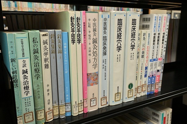 写真:現代語の鍼灸関係書籍の棚。