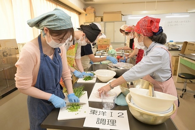 写真:2年生は「チヂミ」作ります。昨年に続き。明日明後日の本番に向けて練習。