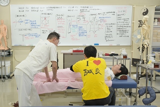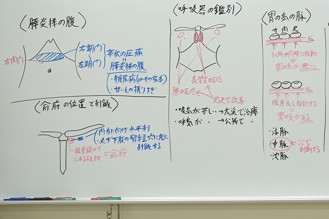 今回は、学生さんをモデルにしながら、事前に確認している問診情報と、体表所見を確認しながら、どのツボの組み合わせ(ツボの組み合わせを長野式治療法では「処置法」と表現しています)が適応かを確認していきます。